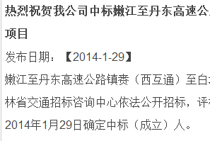 熱烈祝賀我公司中標(biāo)嫩江至丹東高速公路鎮(zhèn)賚(西互通)至白城(陶家互通)段建設(shè)項(xiàng)目 發(fā)布日期:【2014-1-29】 嫩江至丹東高速公路鎮(zhèn)賚(西互通)至白城(陶家互通)段建設(shè)項(xiàng)