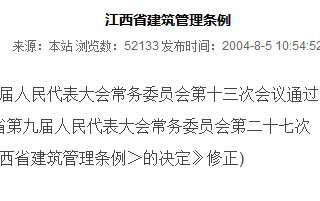1999年12月17日江西省第九屆人民代表大會常務委員會第十三次會議通過, 根據(jù)2001年12月22日江西省第九屆人民代表大會常務委員會第二十七次 會議通過的《關于修改<江西省建筑管理條例>的決定》修正) 第一章 總則 第一條 為加強對建筑活動的監(jiān)督管理,維護建筑市場秩序,保證建筑工程質(zhì)量和安全,促進建筑業(yè)健康發(fā)展,根據(jù)《中華人民共和國建筑法》、《中華人民共和國招標投標法》及其他有關法律、法規(guī),結(jié)合本省實際,制定本條例。 第二條 在本省行政區(qū)域內(nèi)從事建筑活動,實施對建筑活動的