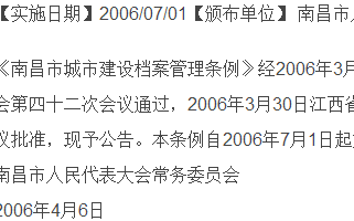 《南昌市城市建設檔案管理條例》經(jīng)2006年3月1日南昌市第十二屆人民代表大會常務委員會第四十二次會議通過,2006年3月30日江西省第十屆人民代表大會常務委員會第二十次會議批準,現(xiàn)予公告。本條例自2006年7月1日起施行。 南昌市人民代表大會常務委員會