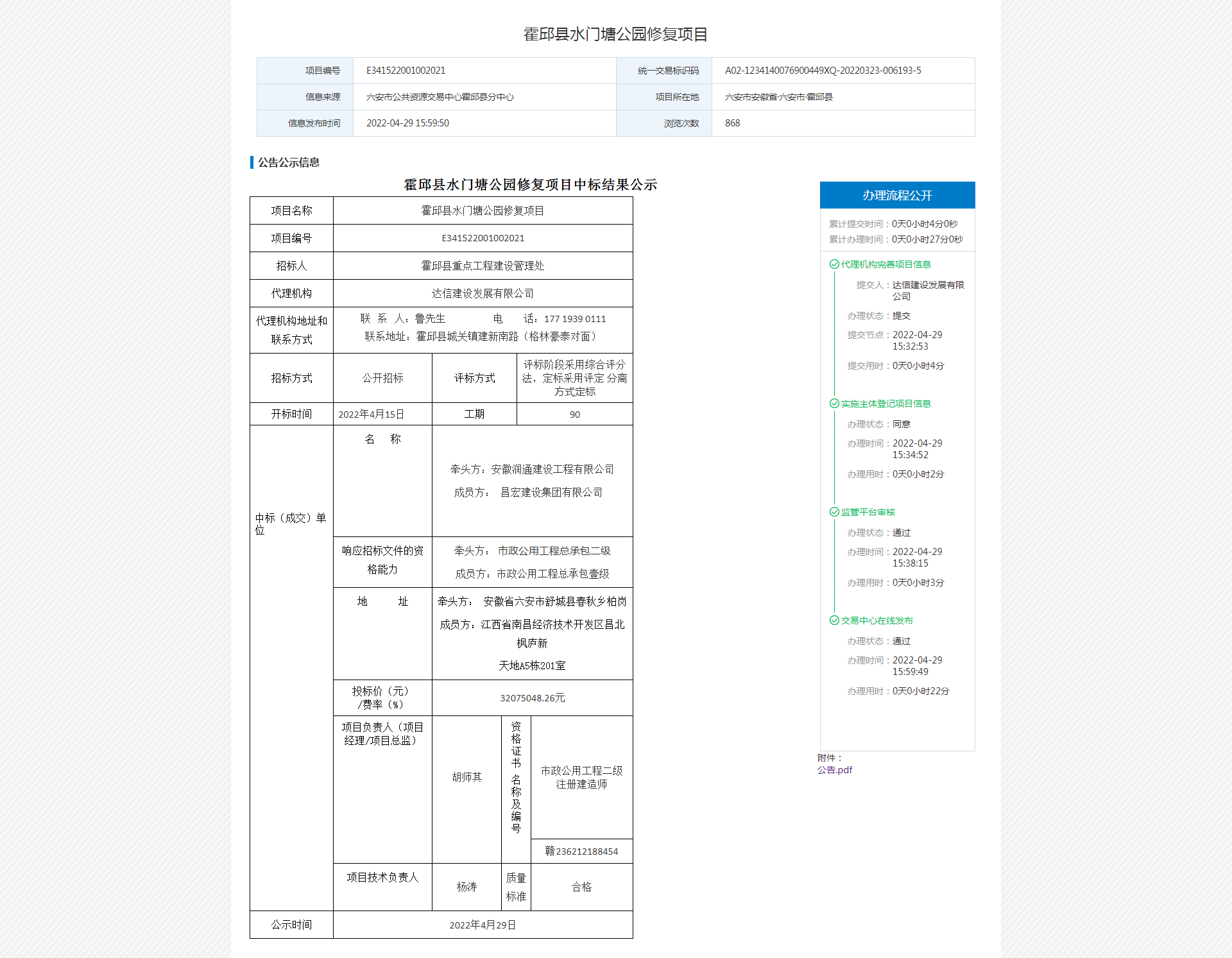 昌宏建設(shè)集團(tuán)喜中霍邱縣水門塘公園修復(fù)項(xiàng)目(聯(lián)合體2)
