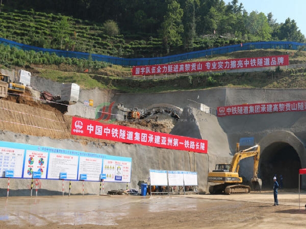大理至瑞麗鐵路位于云南省西部,全長(zhǎng)約330公里,是國(guó)家“一帶一路”戰(zhàn)略規(guī)劃中泛亞鐵路(西線)中緬國(guó)際鐵路通道的重要組成部分。其中重點(diǎn)控制性工程——高黎貢山隧道全長(zhǎng)34.538公里,是目前世界第七長(zhǎng)大隧道,(瑞士新圣哥達(dá)隧道長(zhǎng)57.6公里、奧意布雷納隧道長(zhǎng)55.6公里、日本青函海峽隧道長(zhǎng)53.85公里、法意里昂-都靈間隧道長(zhǎng)52.11公里、英法英吉利海峽隧道長(zhǎng)49.50公里、瑞士勒奇山隧道長(zhǎng)34.6公里),系亞洲最長(zhǎng)的鐵路山嶺隧道。高黎貢山隧道位于怒江車站和龍陵車站之間。隧道進(jìn)口位于世界第二大峽谷——怒江大峽谷西岸的懸崖峭壁上,緊臨抗日戰(zhàn)爭(zhēng)著名紀(jì)念地惠通橋,隧道出口從1100余米深的地下穿過(guò)松山抗戰(zhàn)遺址和龍陵縣城后,進(jìn)入德宏州芒市,預(yù)計(jì)總投資36億。