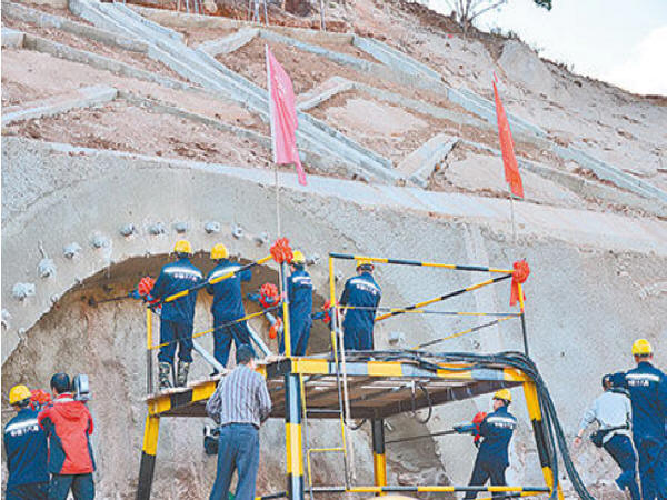 因保山與德宏海拔不同,隧道需從山底無(wú)間隙貫穿,為確保高黎貢山隧道順利施工,需建設(shè)進(jìn)入正洞施工的主要輔助通道,即一道斜井、兩道豎井。斜井主井長(zhǎng)3646米,副井長(zhǎng)3689米,斜井工程是高黎貢山隧道項(xiàng)目的關(guān)鍵工程,全長(zhǎng)3800米,屬國(guó)內(nèi)鐵路建設(shè)中最長(zhǎng)的斜井。主體工程開(kāi)工后,中鐵隧道集團(tuán)項(xiàng)目部組合了短進(jìn)尺、弱爆破和施噴機(jī)械等技術(shù)性手段進(jìn)行施工。截止目前,主井掘進(jìn)深度達(dá)16米,副井掘進(jìn)深度達(dá)24米。同時(shí),兩座豎井同步開(kāi)工建設(shè),其中的1號(hào)豎井深度達(dá)764米,不僅是國(guó)內(nèi)鐵路建設(shè)中最深的豎井,也是亞洲第一深豎井。目前,1號(hào)豎井已通過(guò)開(kāi)工驗(yàn)收進(jìn)入施工階段。