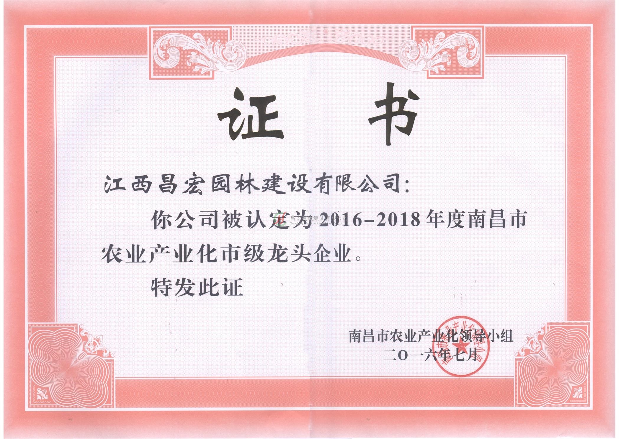 2016-2018年度南昌市農(nóng)業(yè)產(chǎn)業(yè)化市級(jí)龍頭企業(yè)