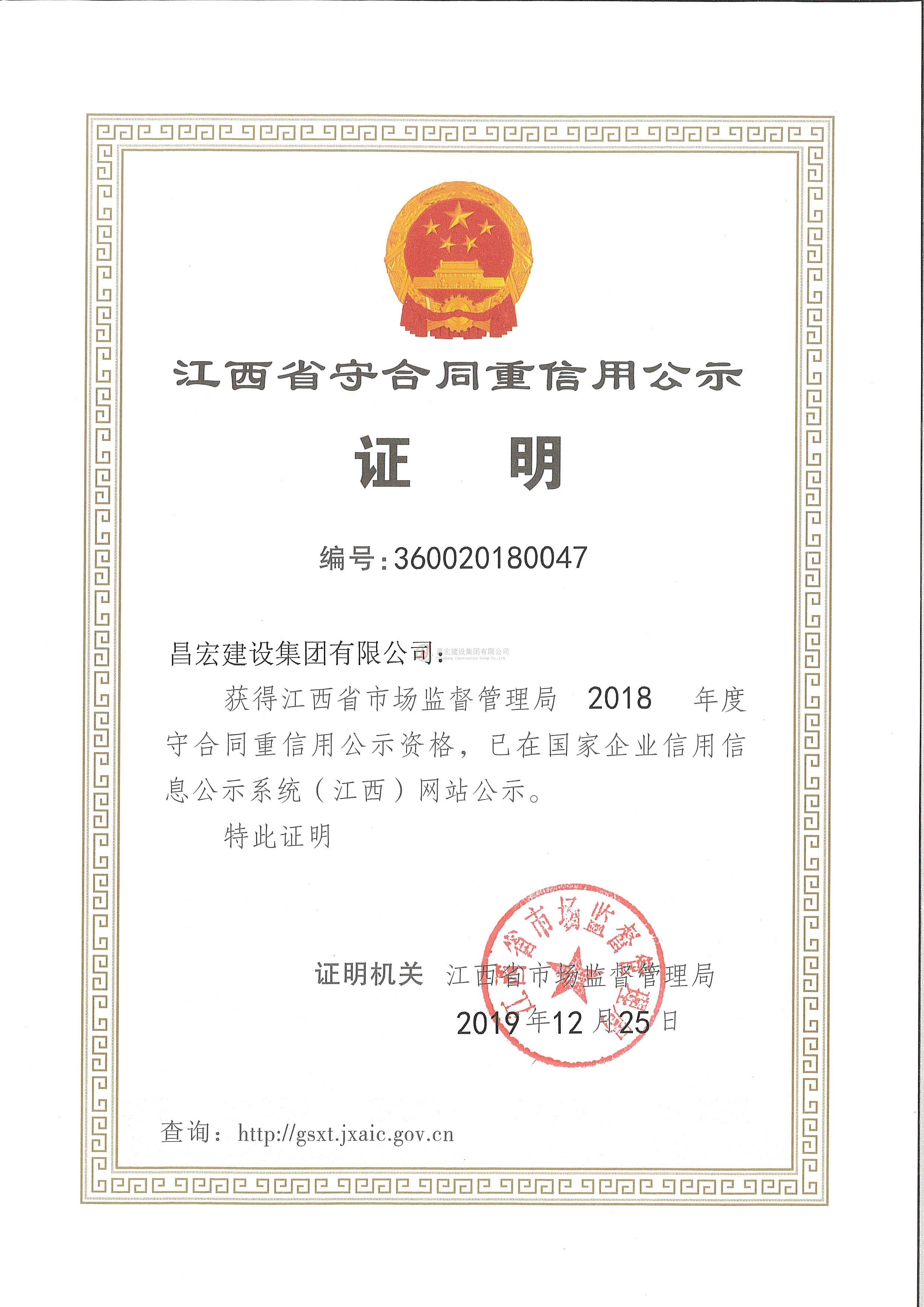 2017年度江西省守合同重信用公示證明2018年-2020年省級(jí)龍頭企業(yè)