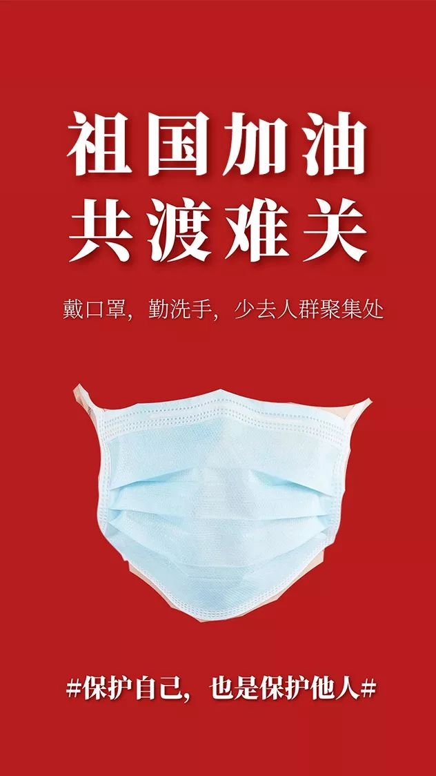 也請(qǐng)各位加強(qiáng)防范,堅(jiān)持佩戴口罩,減少外出和聚會(huì),回避接觸密集人群,一起抗擊疫情,共度非常時(shí)期。祖國加油!武漢加油!大家安好,我們同在!