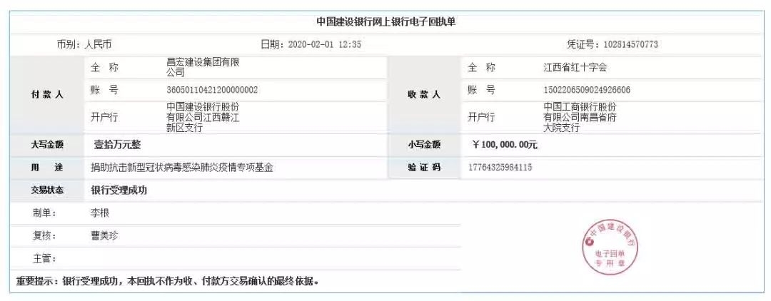近期新型冠狀病毒感染的肺炎疫情引起全國人民的關(guān)注,萬眾一心迎挑戰(zhàn),眾志成城抗災(zāi)情,此時(shí)社會(huì)各界都在貢獻(xiàn)自己的力量,至此昌宏建設(shè)集團(tuán)向江西省紅十字會(huì)捐贈(zèng)十萬元用于抗擊新型冠狀病毒感染肺炎疫情專項(xiàng)基金!