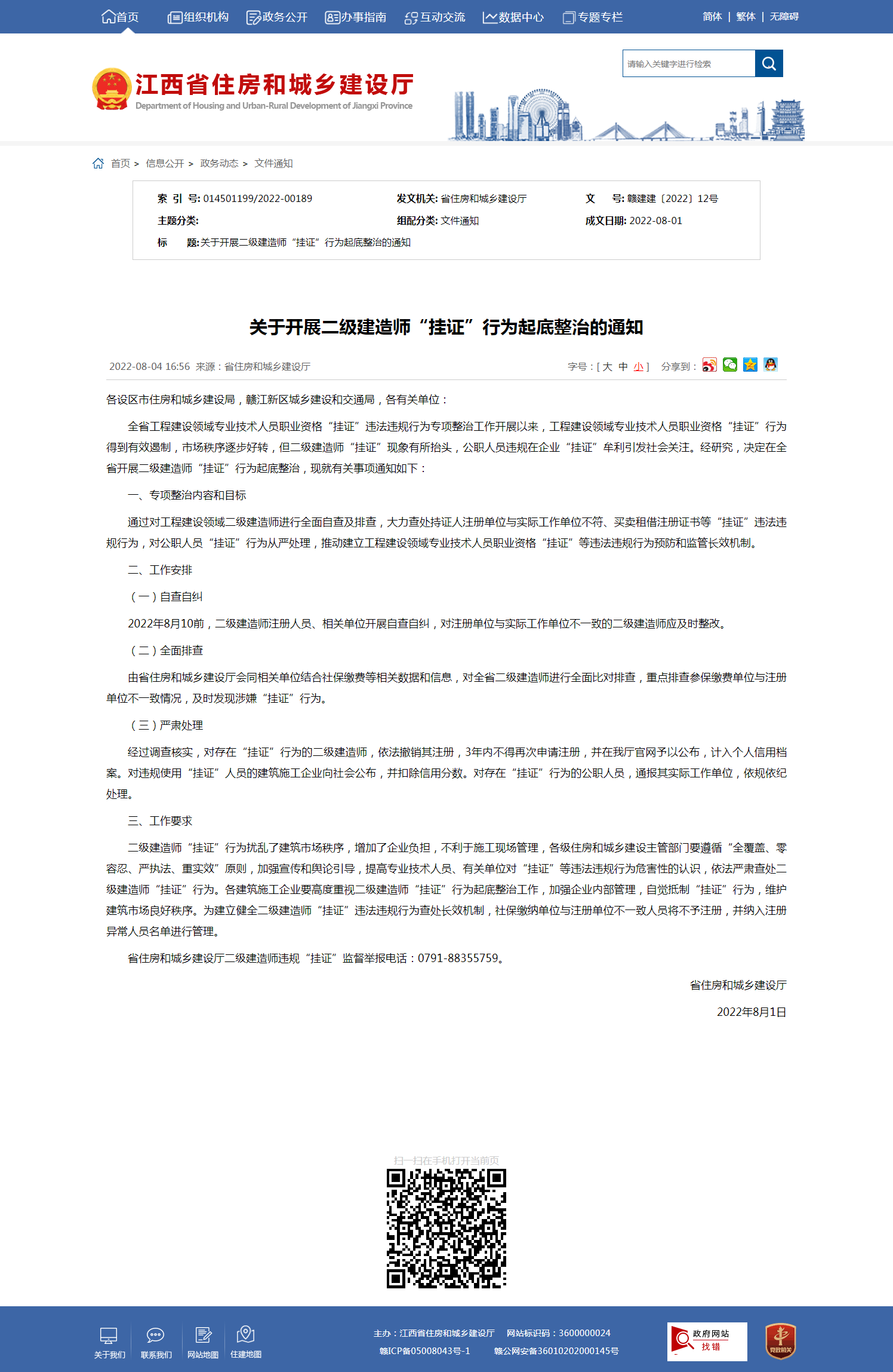 關(guān)于開展二級(jí)建造師“掛證”行為起底整治的通知