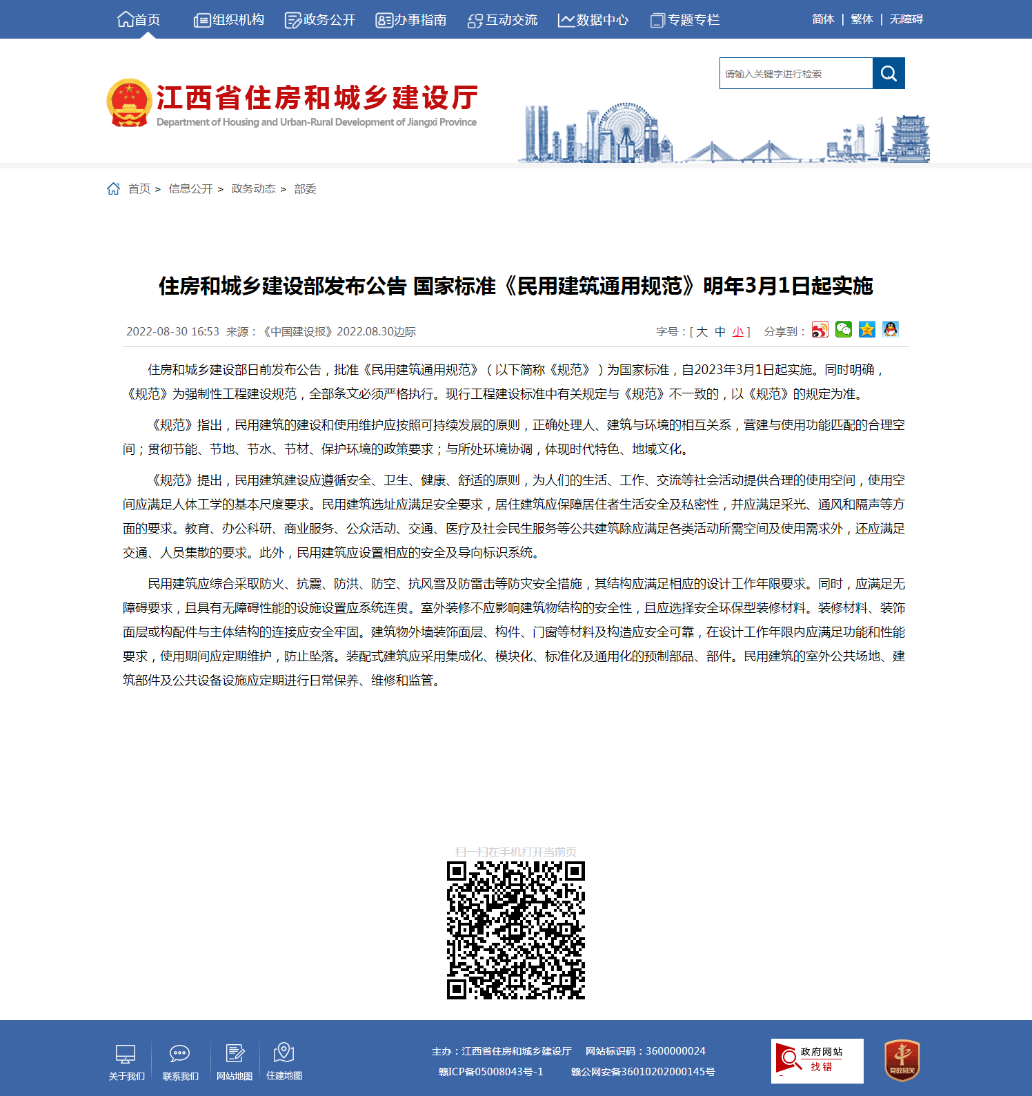 住房和城鄉(xiāng)建設部發(fā)布公告 國家標準《民用建筑通用規(guī)范》明年3月1日起實施