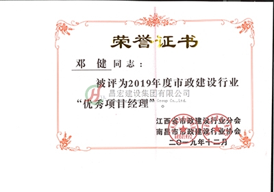 鄧健2019年度市政行業(yè)優(yōu)秀項目經(jīng)理