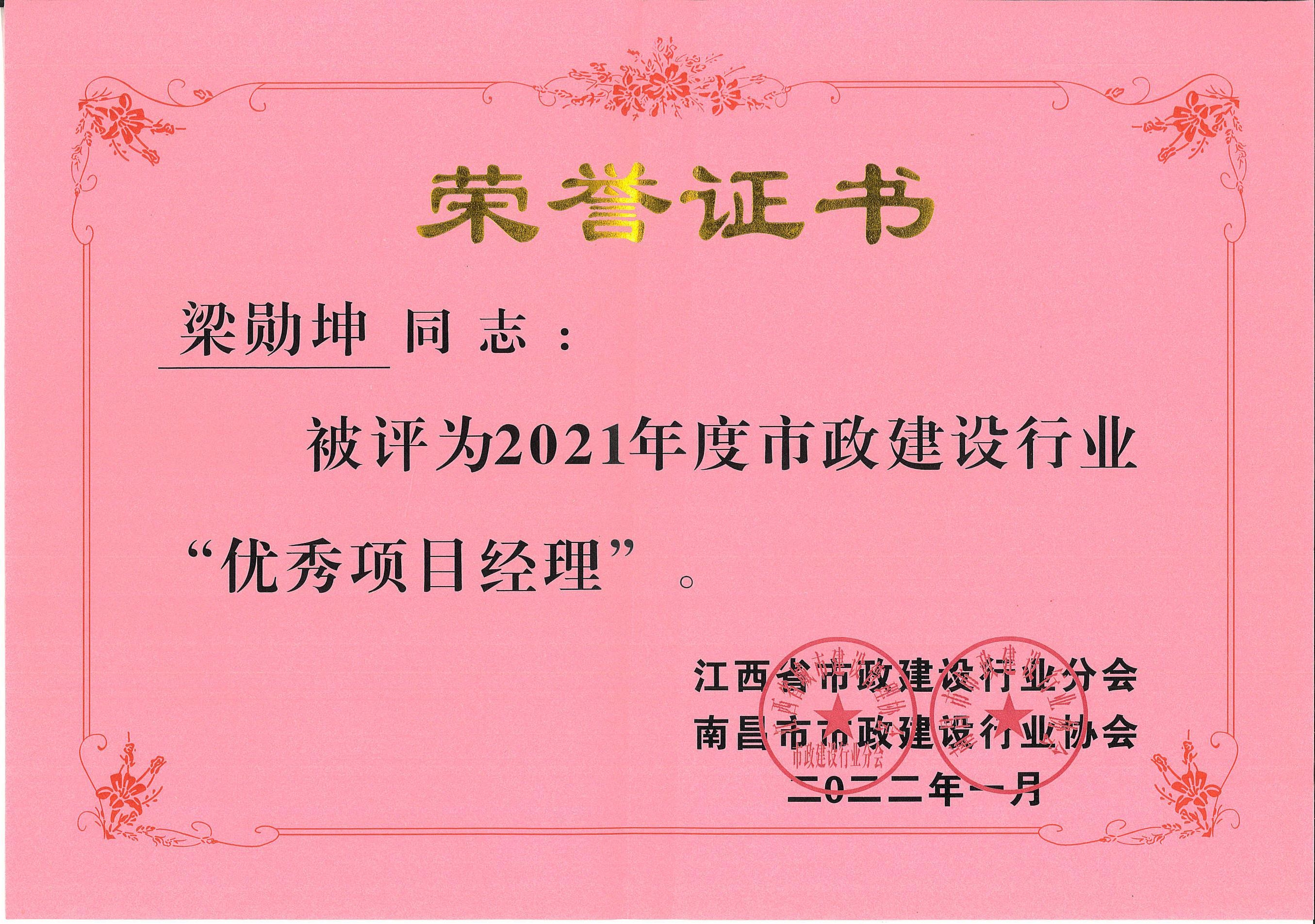 梁勛坤被評為2021年度建設行業(yè)“優(yōu)秀項目經(jīng)理”